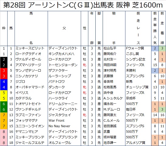 2019年4月13日(土)第28回 アーリントンC(GⅢ) 阪神 芝1600m